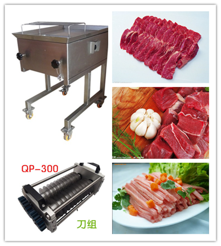●本机可根据客户加工产品需要,配置不同形式刀组,分别实现对无骨肉类及类似榨菜富有弹性的食物一次性切片、二次切丝、三次切丁功能,对鸡鸭鸽等带骨禽类切片切丁功能;